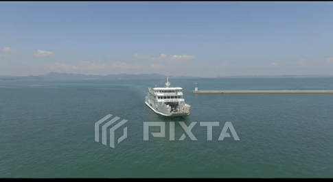 ドローン空撮 4K 香川県小豆郡土庄町豊島 小豆島から豊島へ向かうフェリー 未完成 関西テレビへ提供