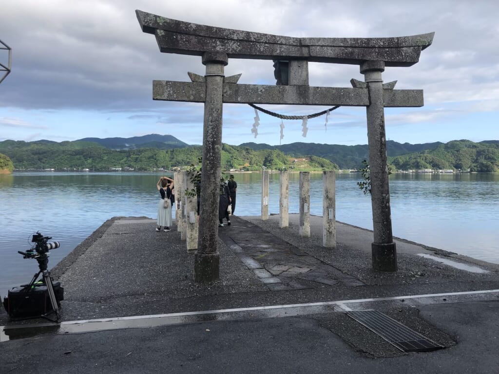 北方対岸の横浪港に遥拝所があり、市営巡航船の貸切運行を利用することで、そこから湾内の海を縦断して参拝することも可能となっている。